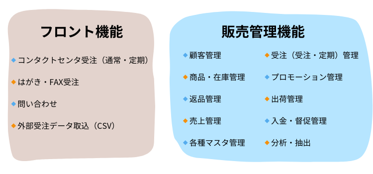 ECサイトの運用に必要な機能を網羅していますが、なかでも電話対応のようなオフラインでの顧客対応に強みを持っています。